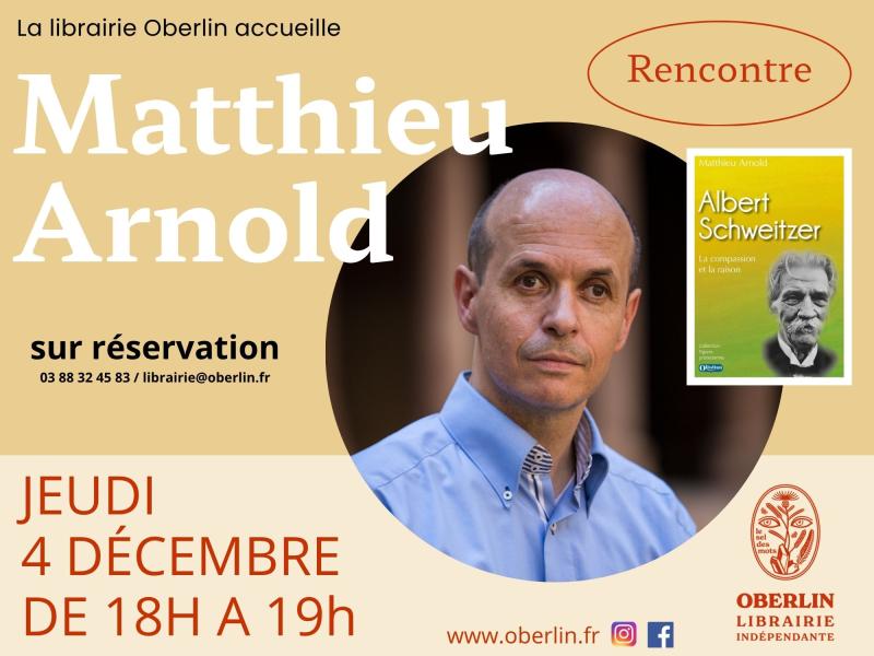 - 4 décembre, 18h, Librairie Oberlin, Strasbourg : Rencontre avec Matthieu Arnold pour sa biographie d'Albert Schweitzer "La compassion et la raison"